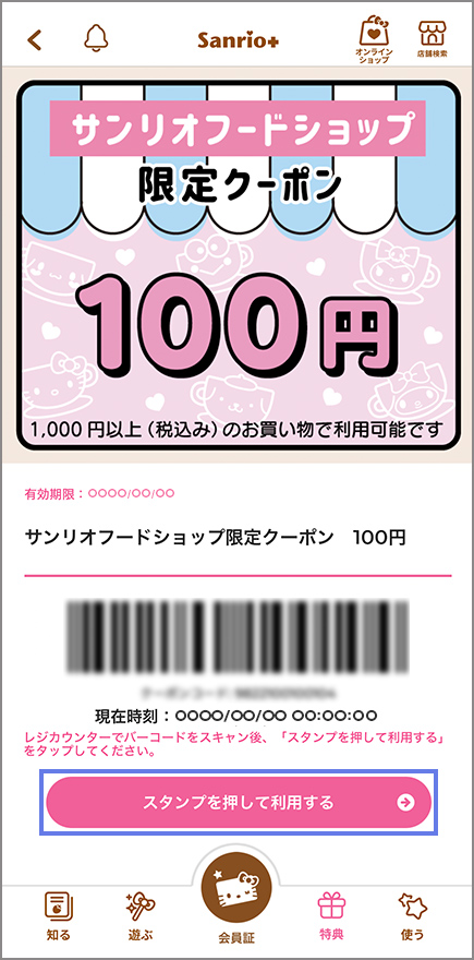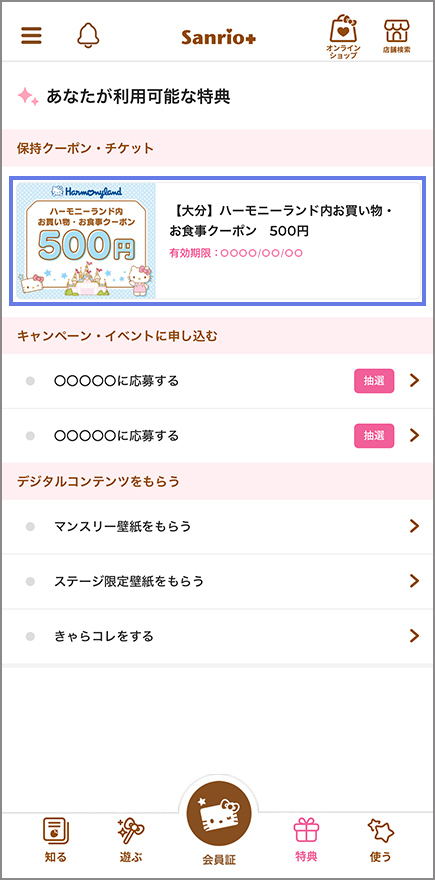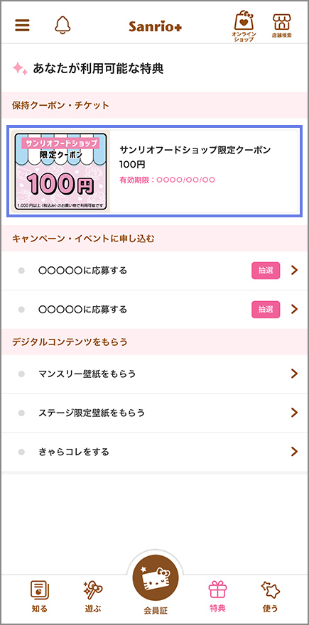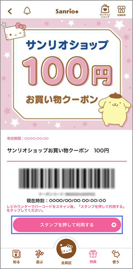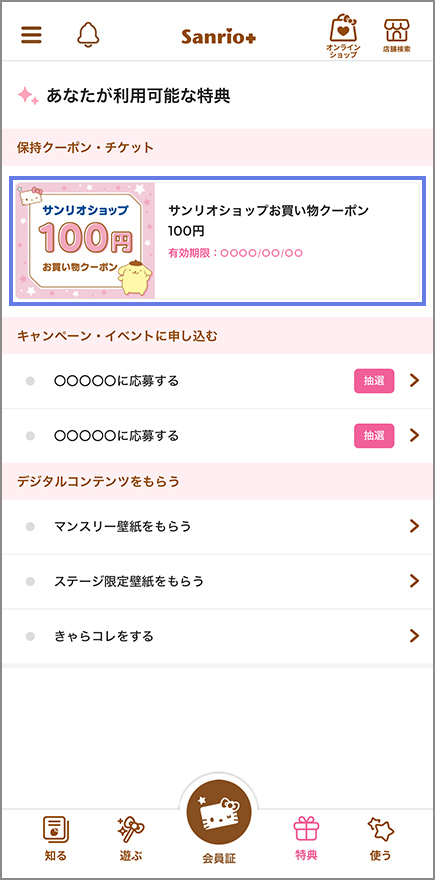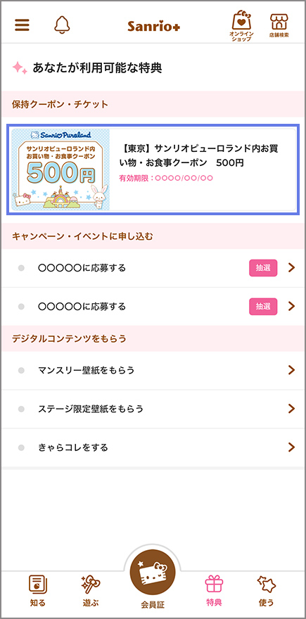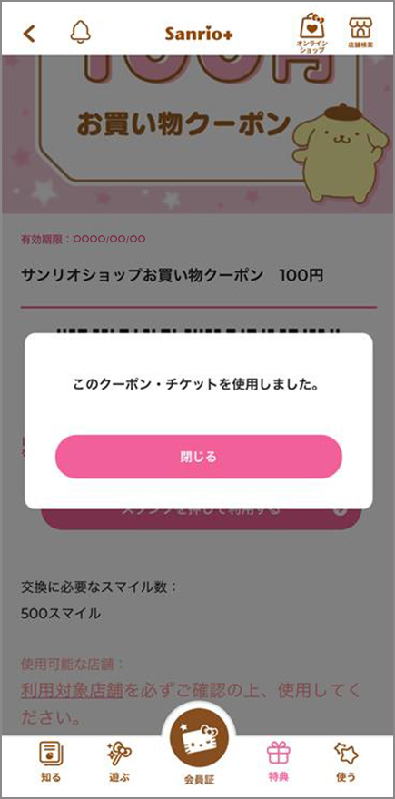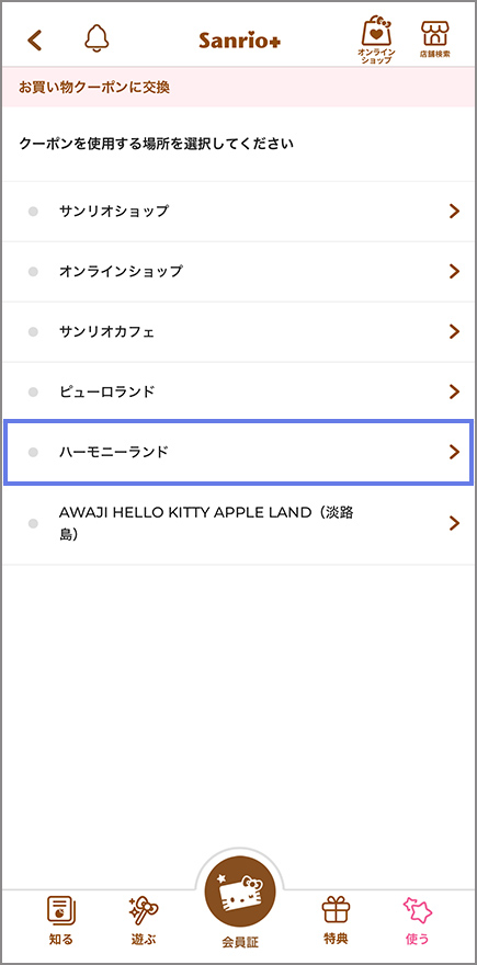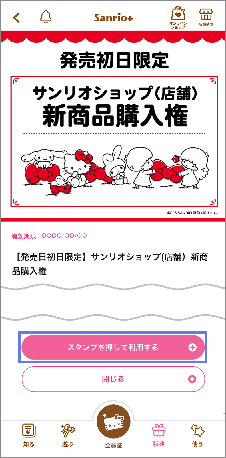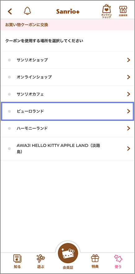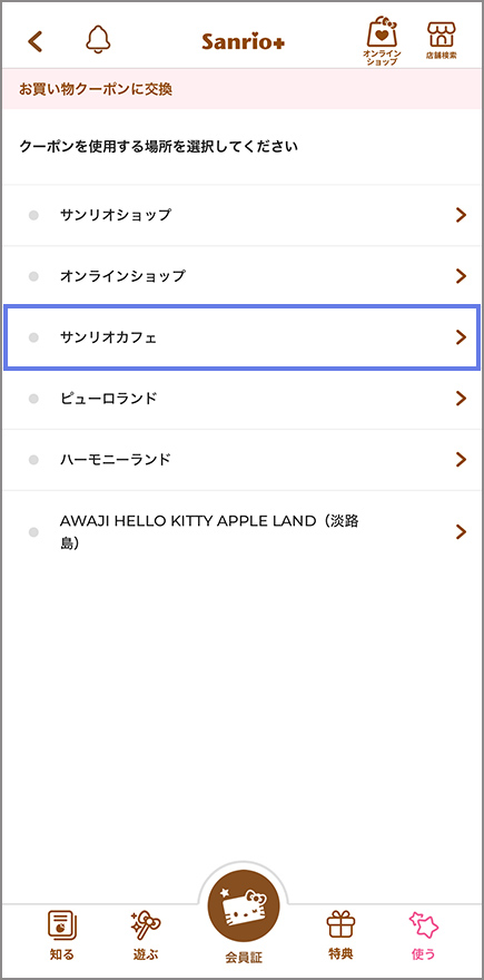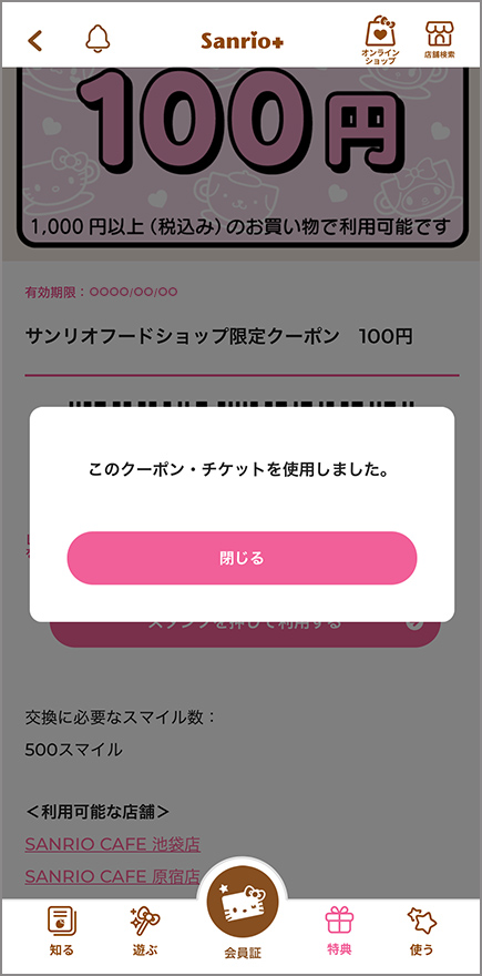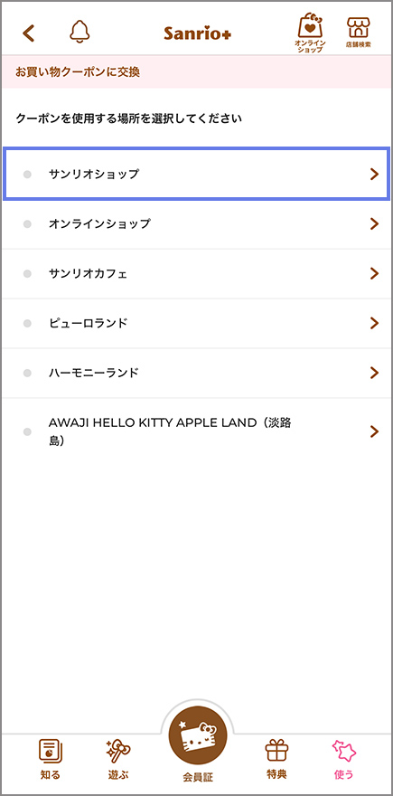 Sanrio+お買い物クーポンがご利用いただける店舗を事前にご確認ください。 -