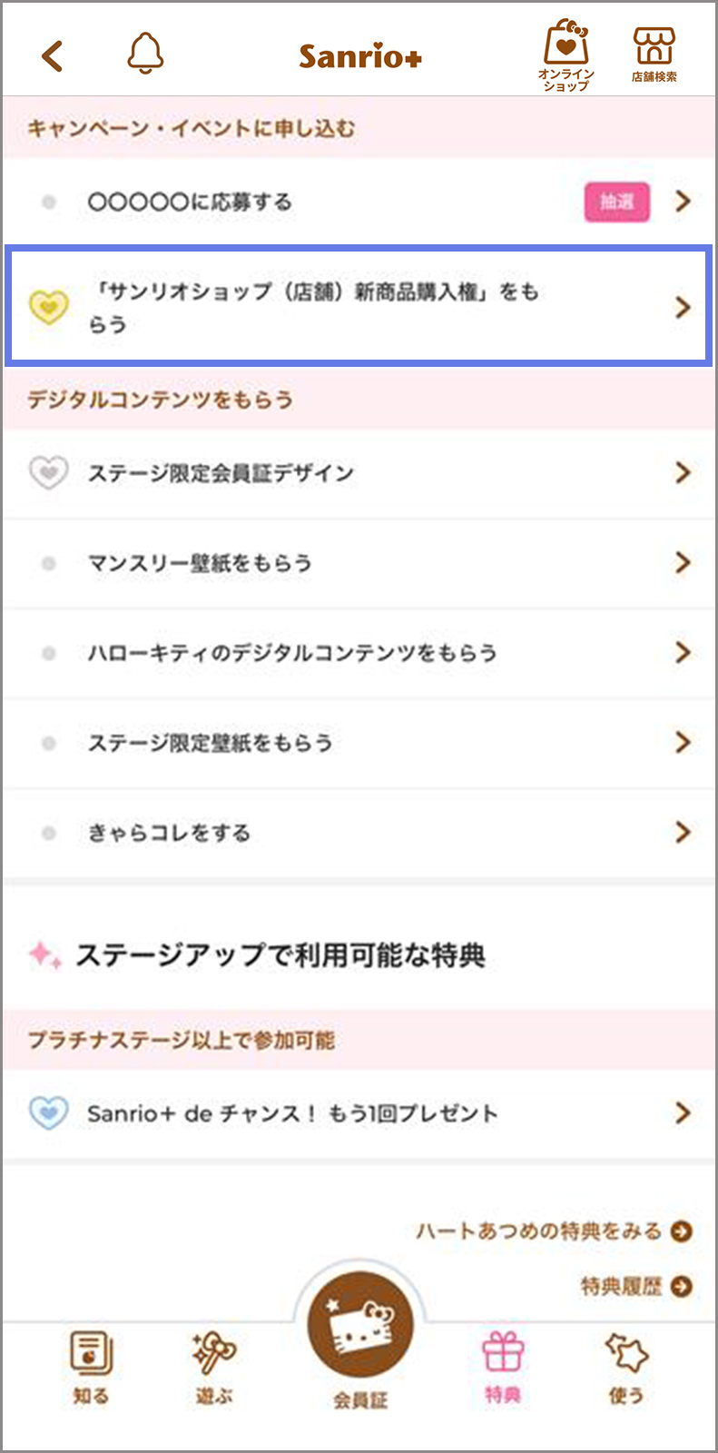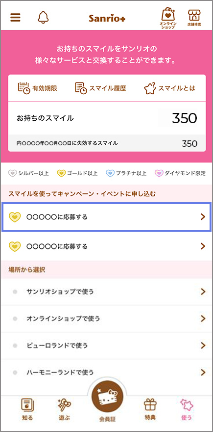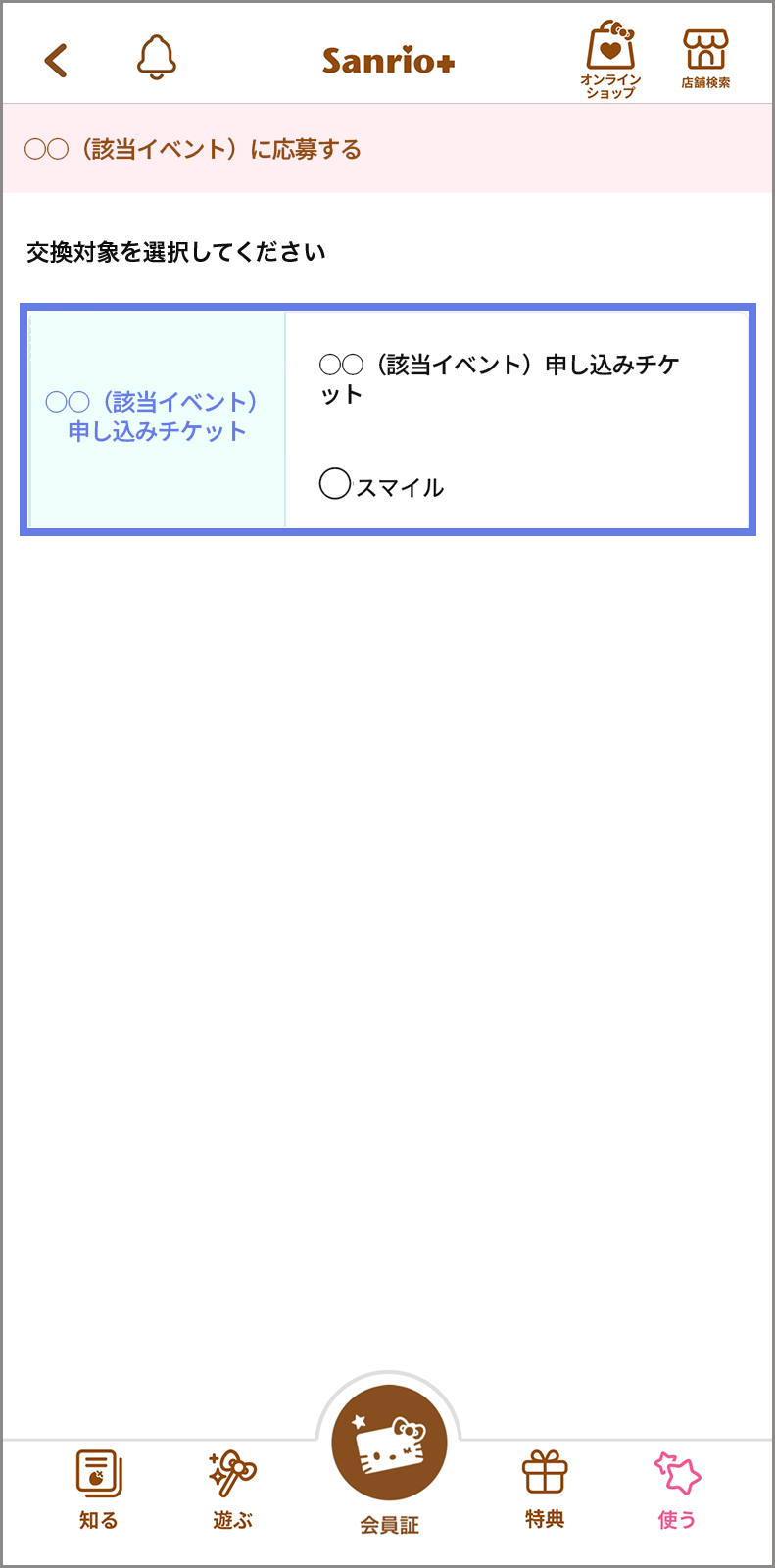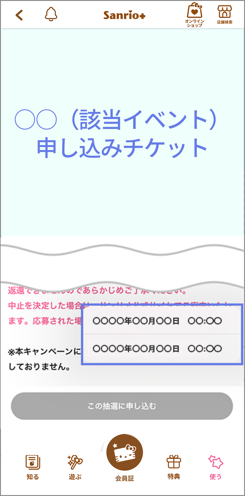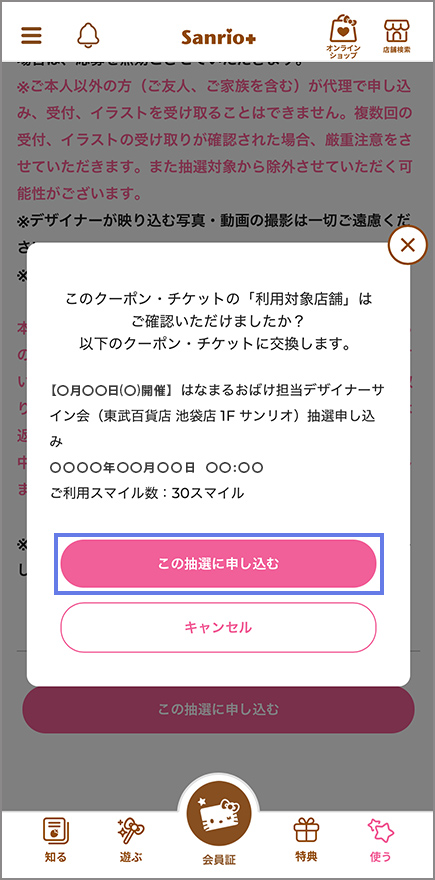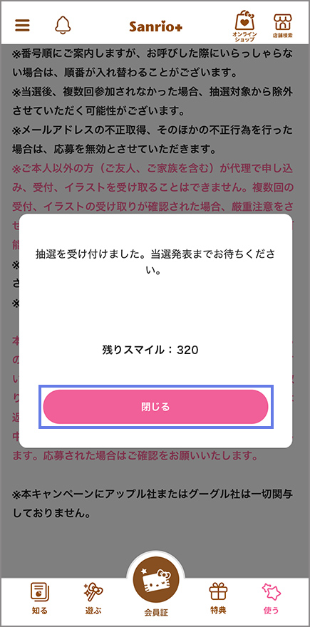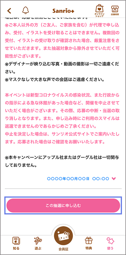 Sanrio+会員限定イベントの抽選に申し込みできます。