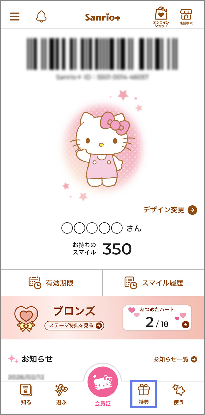 スマイルをサンリオオンラインショップ本店で利用できるお買い物クーポンや送料無料クーポンに交換できます。