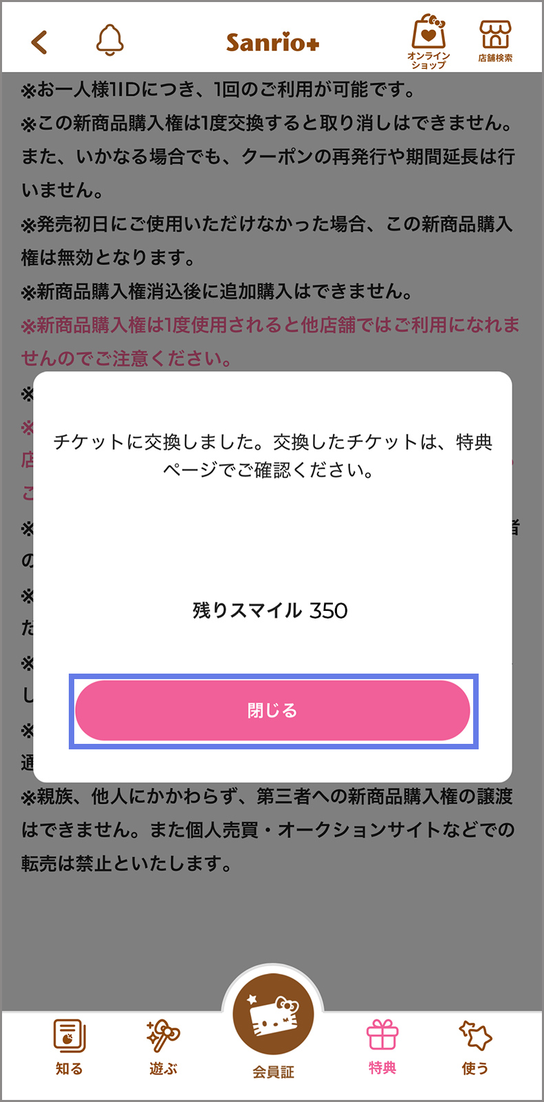 - スマイルで交換したサンリオショップお買い物クーポン併用はできますが、その他の割引サービスとは併用できません。