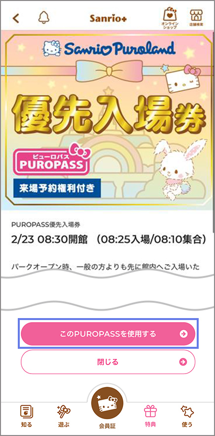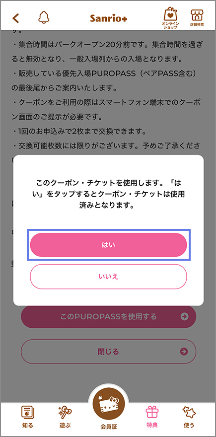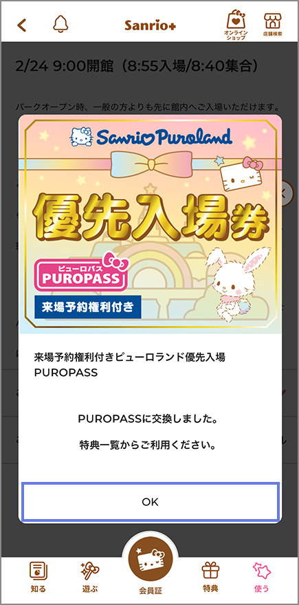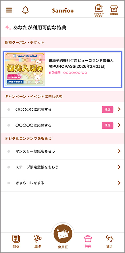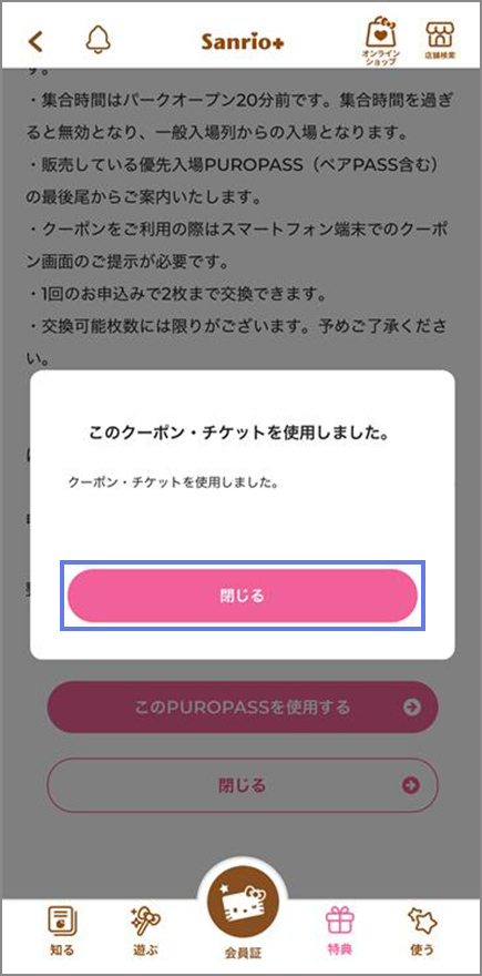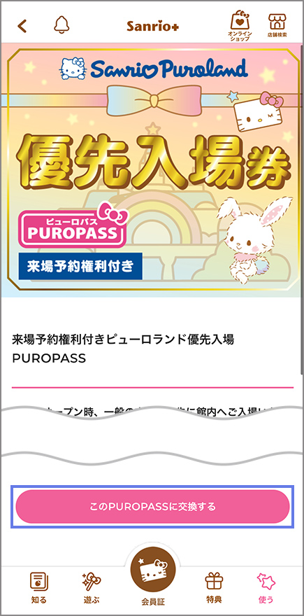 交換したクーポンは、サンリオピューロランド内で発券することで利用できます。