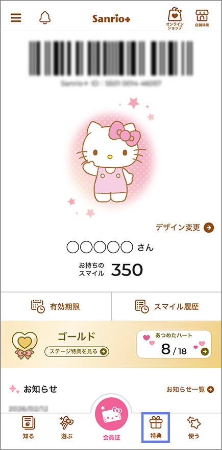 スマイルをサンリオオンラインショップ本店で利用できるお買い物クーポンや送料無料クーポンに交換できます。
