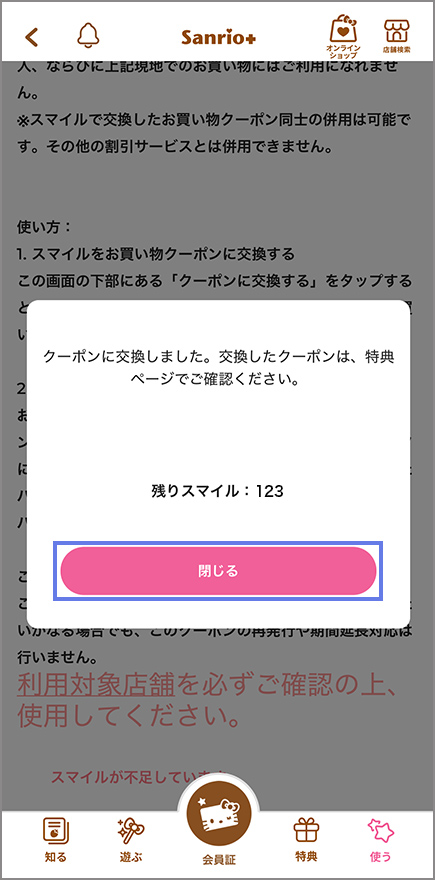 Sanrio+お買い物クーポンがご利用いただける店舗を事前にご確認ください。 -