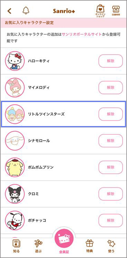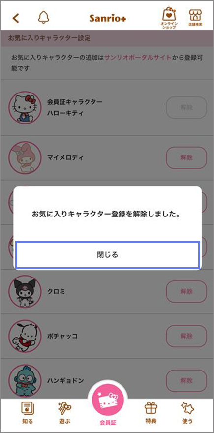 - 3. 解除したいお気に入りキャラクターの「解除」をタップ