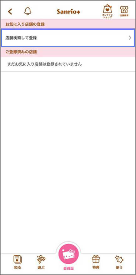 「メニュー」>「会員情報・履歴」>「お気に入り店舗の登録」から、お気に入りの店舗を登録できます。