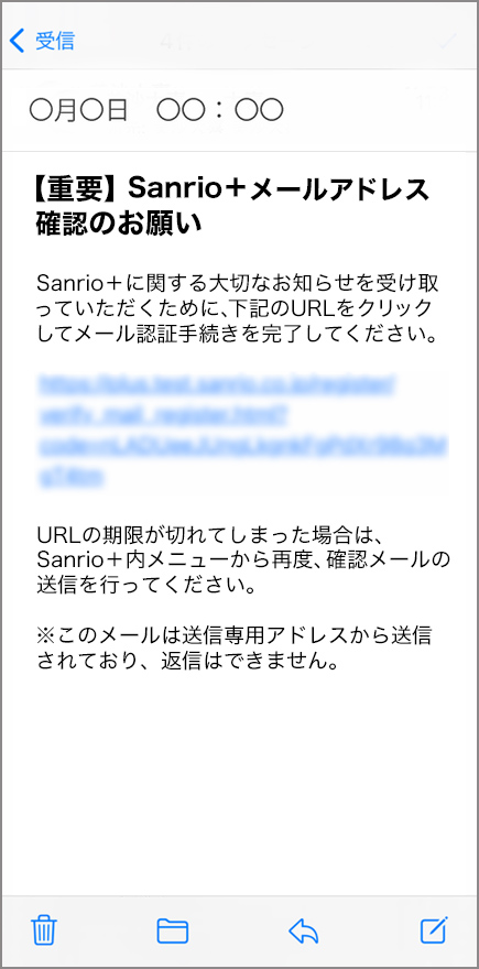 変更先のメールアドレス宛にメールアドレス変更確認メールが届きます。メールに記載のURLにアクセスしてください。