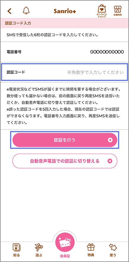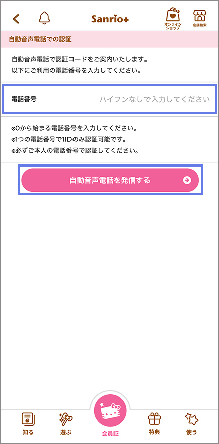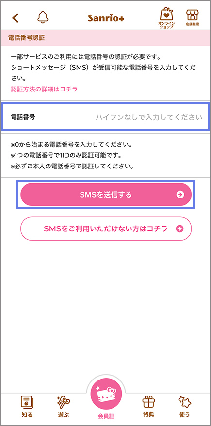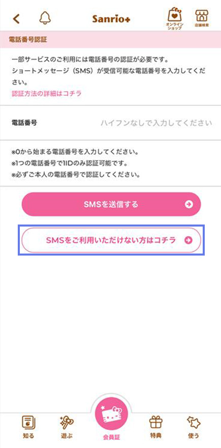※Sanrio+の一部サービスのご利用には電話番号認証が必要です。