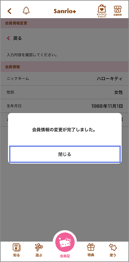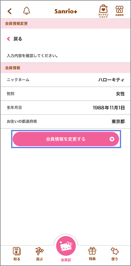 入力内容を確認し、問題なければ「会員情報を変更する」をタップしてください。